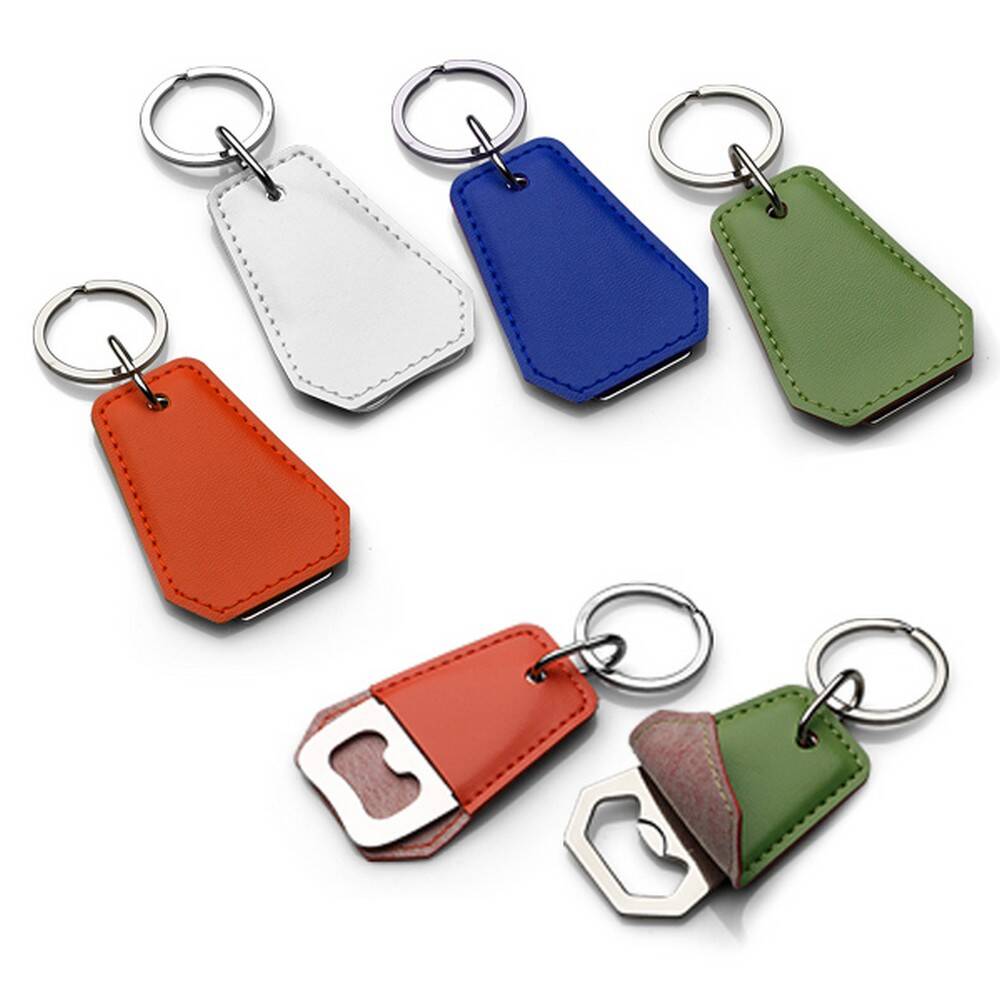 P/chiavi-apribottiglie in pu e metallo. Colori: bianco, blu. Confezione in astuccio. - Dimensioni cm.5x7