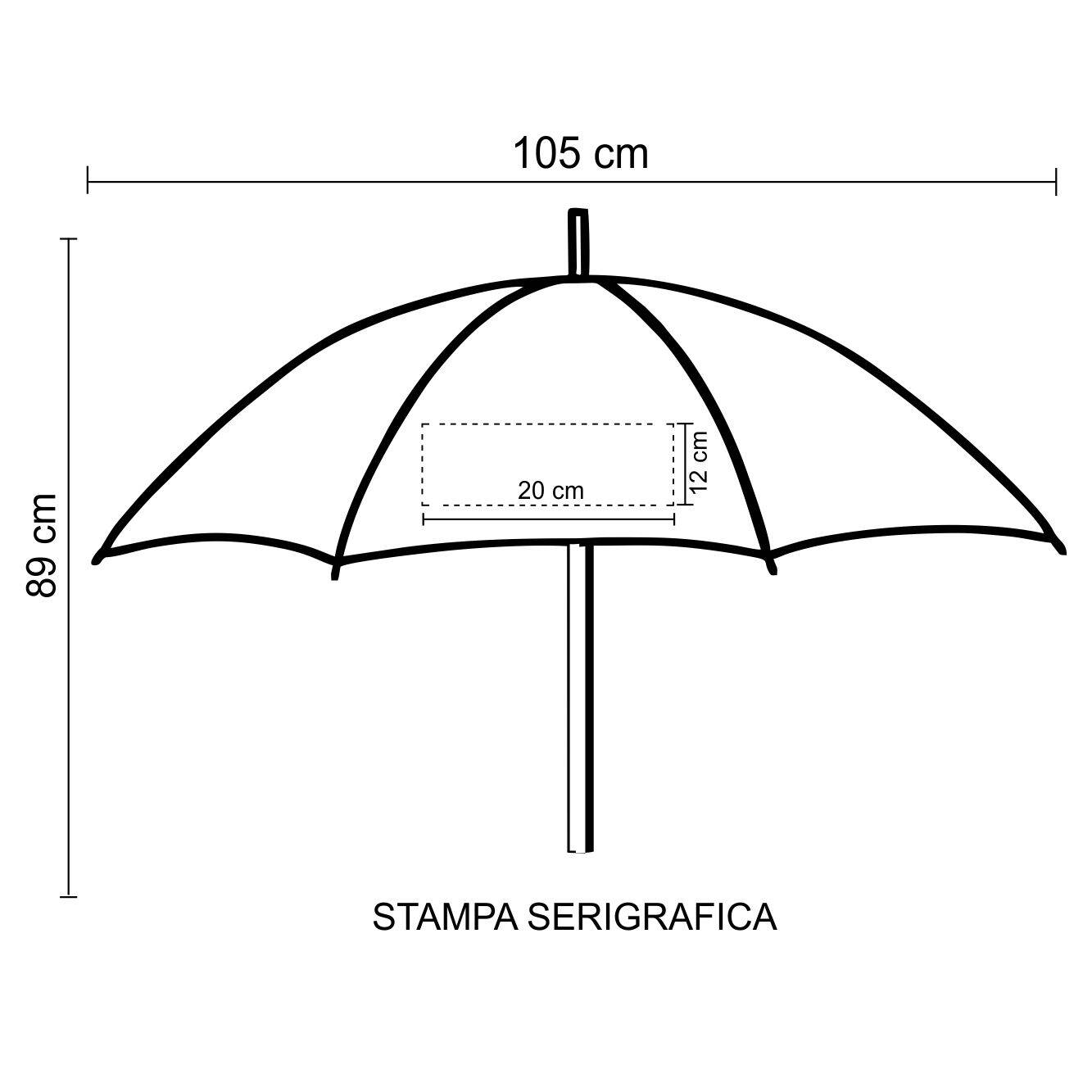 Ombrello scatto automatico. Poliestere 190T.Manico curvo e puntale in legno. Colori: giallo, blu, verde scuro, bianco, bordeaux, arancio. Dimensioni Ǿ cm.105 h. cm.89 Imballo: 60xcolore