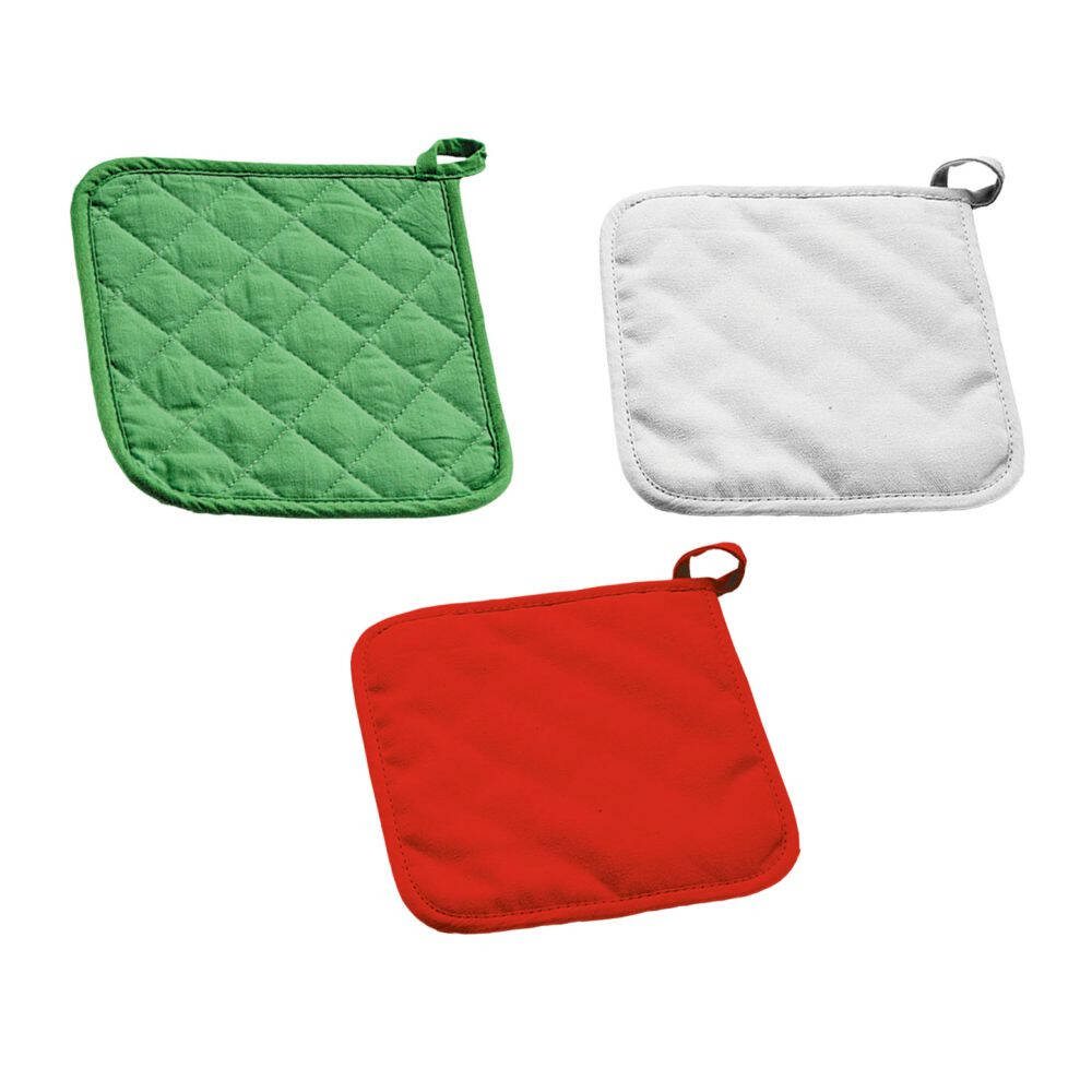 Presina da cucina in canvas. Retro personalizzabile. Colori: verde, rosso, bianco. Confezione in polybag. Dimensioni cm. 20x20 Imballo: 100xcolore
