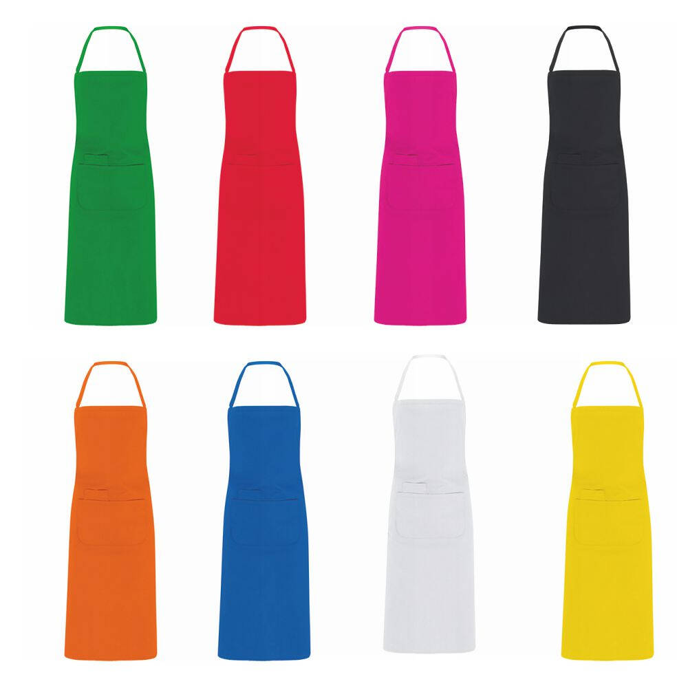 Grembiule lungo - Modello. Altezza 181,00cm - Material: 90% poliestere / 10% cotone, 150 g/m². - 1. Nastro in tono nel collo 2. Due tasche frontali, uno interna e uno grande sovrapposto.