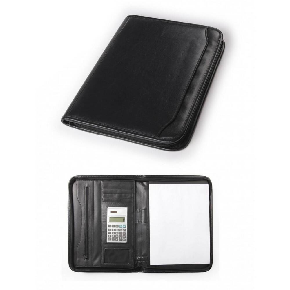 Cartella congresso 2 ante in neopel .Chiusura con zip. Completa di blocco, calcolatrice. Vano porta penne, varie tasche porta carte di credito Colore unico. Confezione in astuccio. . Dimensioni cm 25x34 Imballo: 20.