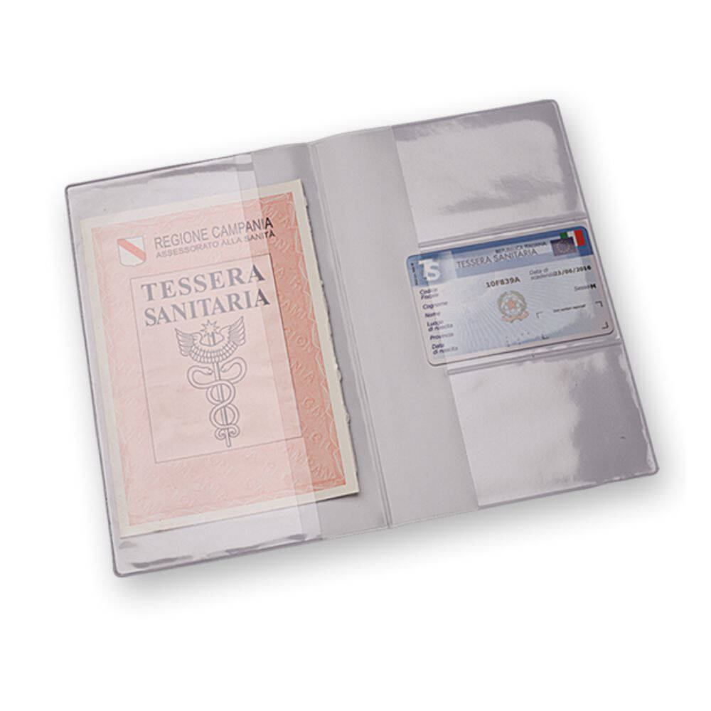 Porta documenti farmacia in pvc. Completo di 3 tasche porta card. Colori: verde, bianco. Dimensioni cm12x18,5 (chiuso) Imballo: 500xcolore