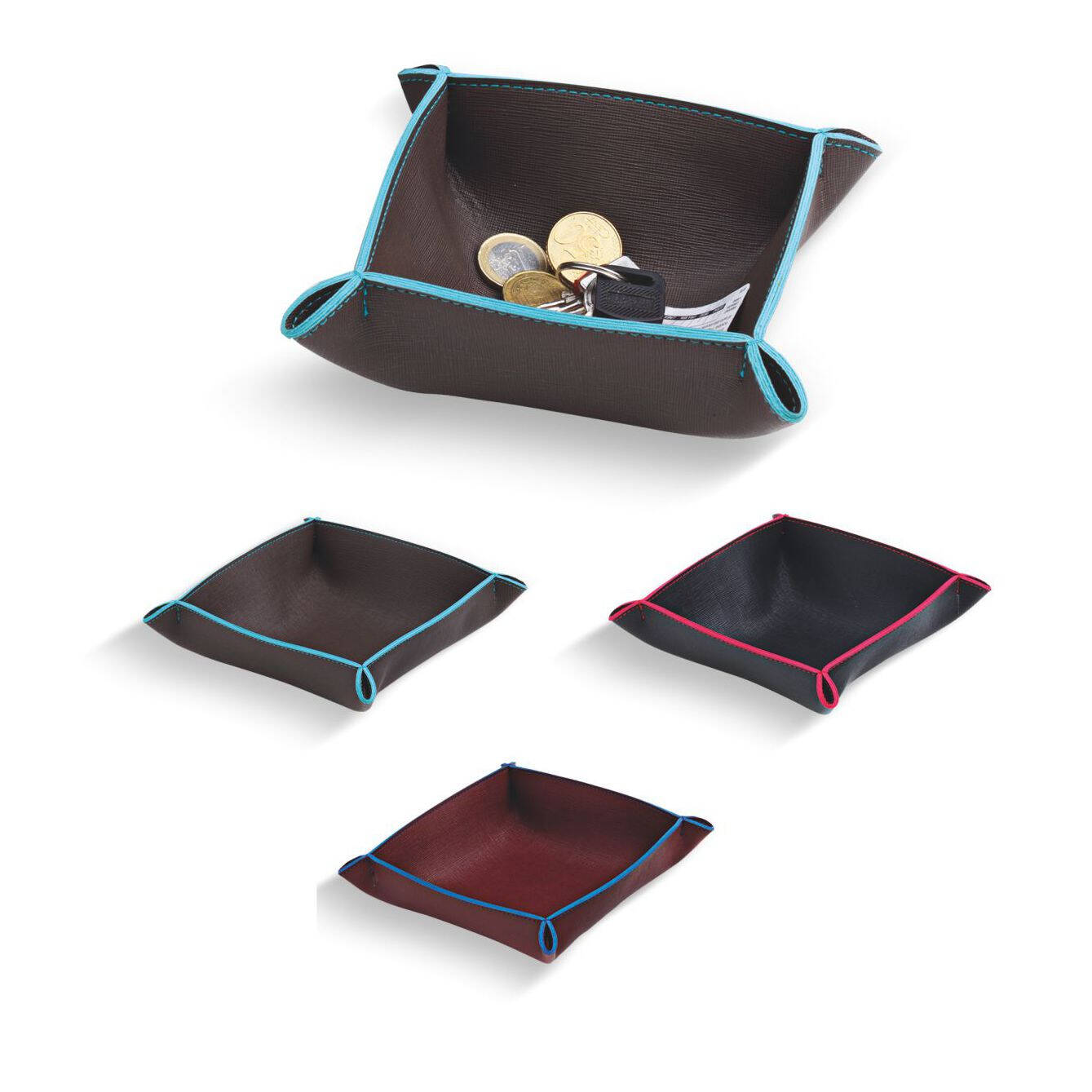 Vuotatasche in similpelle, con profili a contrasto. Colori: blu, bordeaux, nero, tortora. Confezione in astuccio. Dimensioni: cm12x12x5,5 Imballo: 40x colore