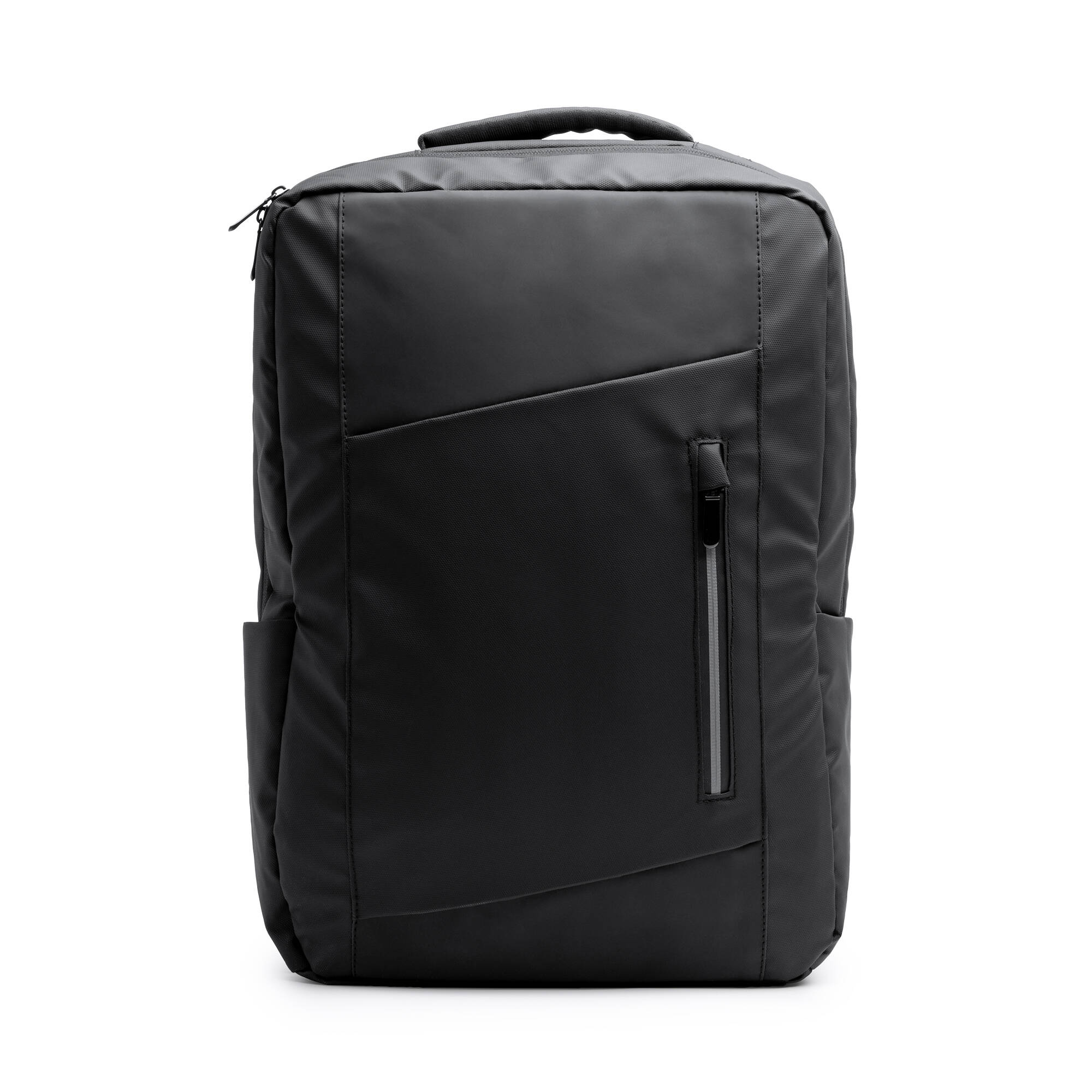 Zaino executive in pelle PU. Corpo imbottito e tasca interna, ideale per computer portatile o tablet da 13”. Tasca esterna con cerniera impermeabile e striscia per la visibilità. Doppio scomparto e tasche laterali. Spallacci e schienale imbottiti. Cinghia