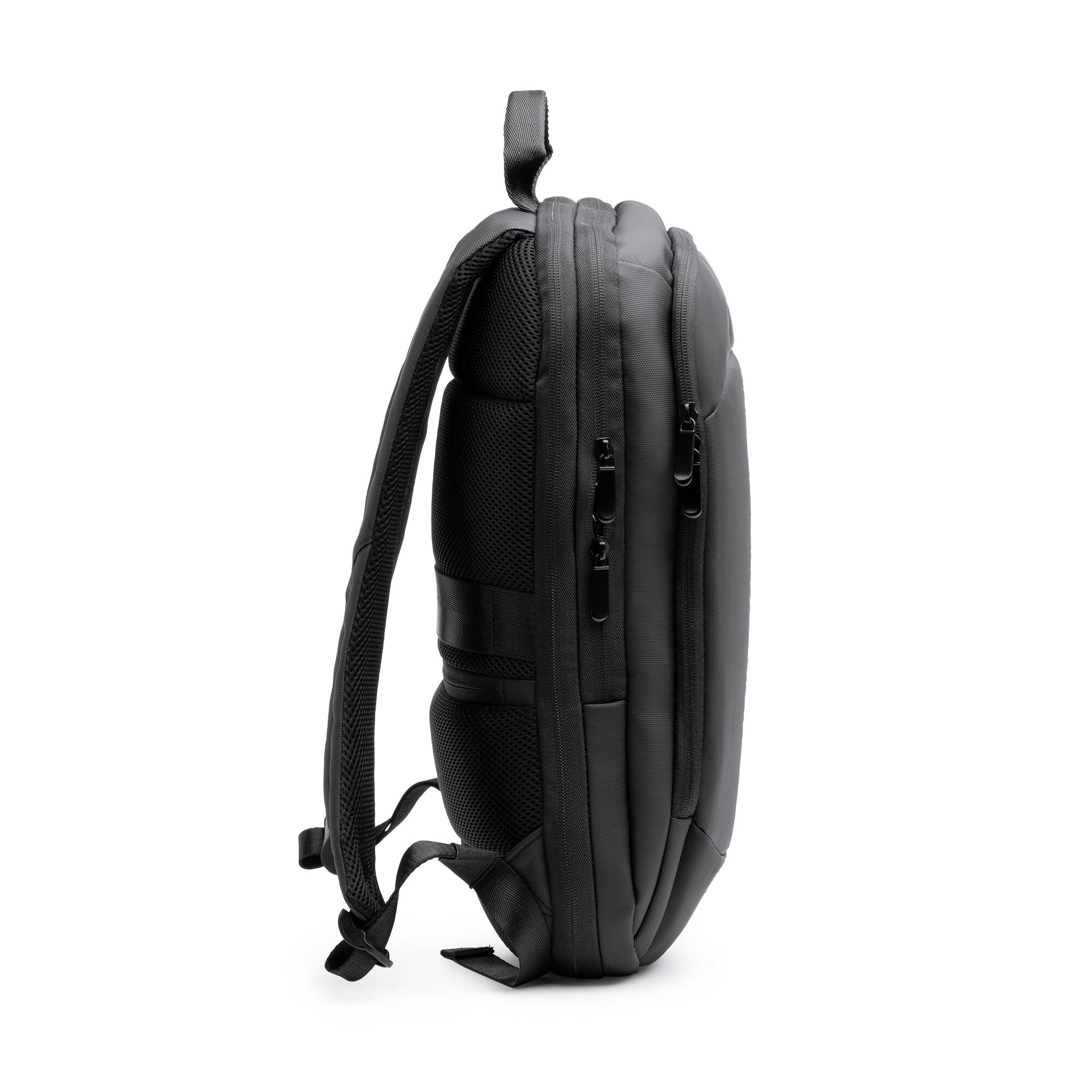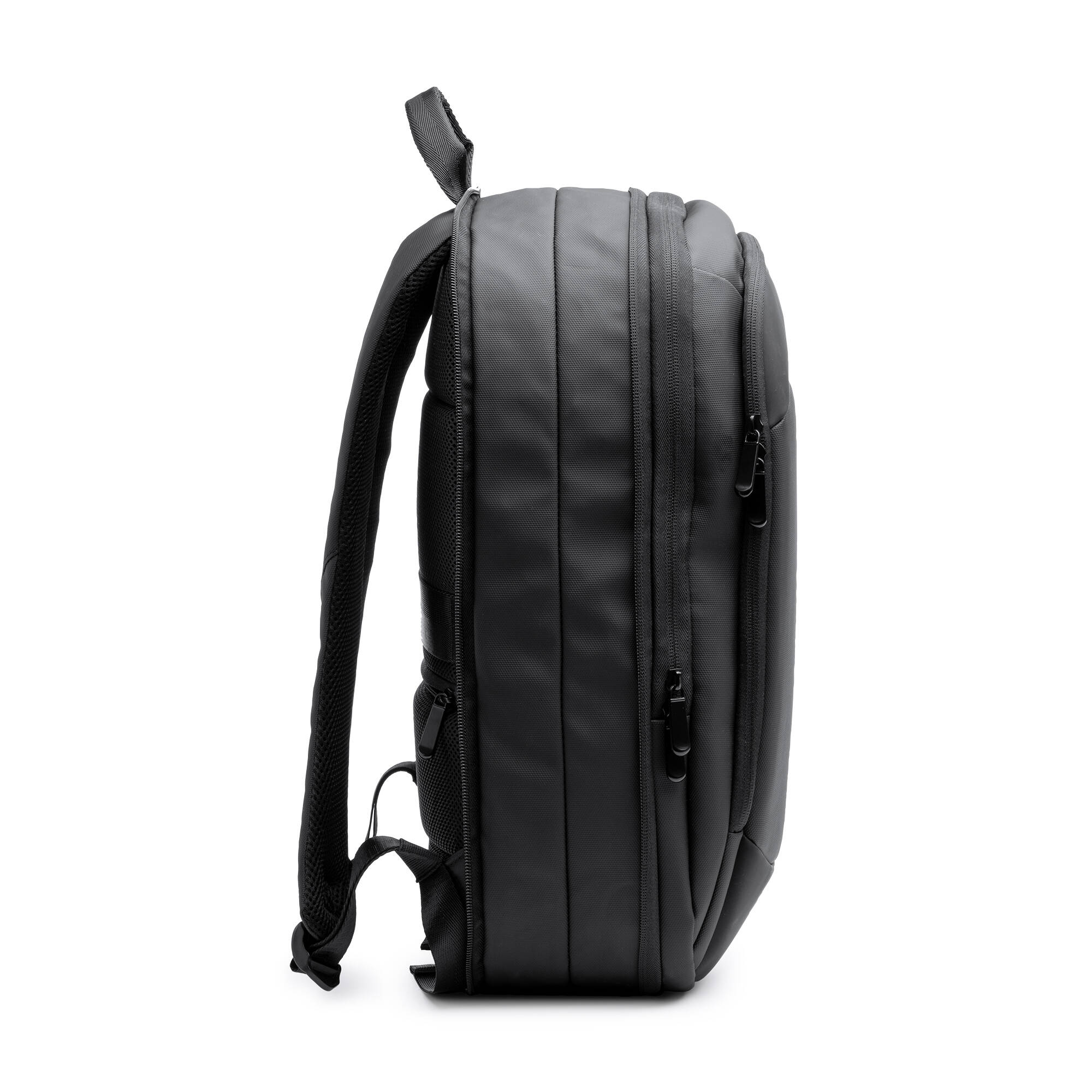 Zaino antifurto estensibile in pelle PU. Ampio scomparto principale e tasca imbottita per computer portatile da 14”. Tasca anteriore esterna imbottita e tasche laterali. Spallacci e schienale imbottiti. Cinghia per trolley. Dimensioni: cm 30x44x18