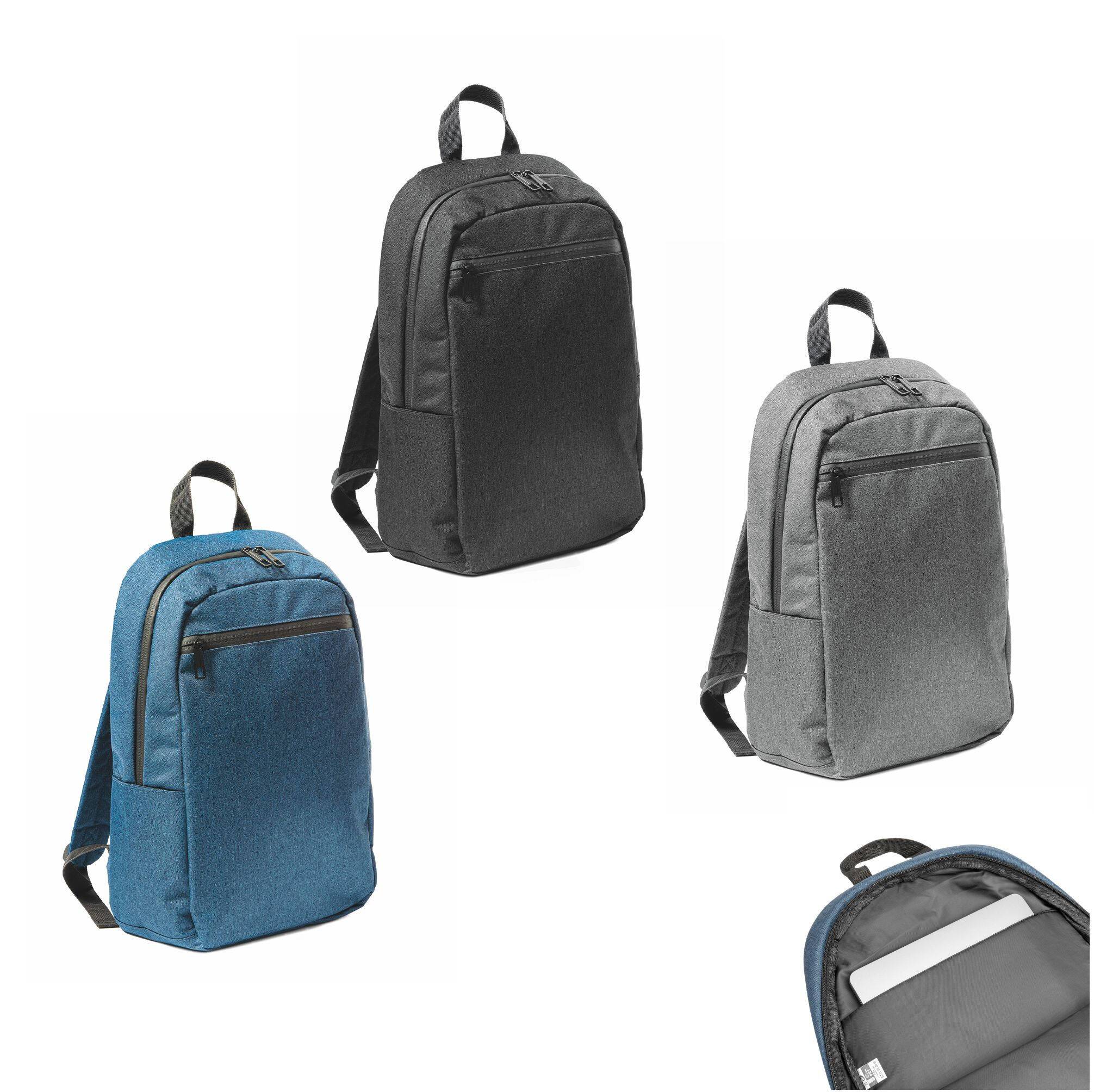 Zaino in poliestere dal design vigoré. Corpo imbottito e tasca interna per laptop. Doppio scomparto e tasca esterna. Manici imbottiti e tracolla per trolley. In RPET 600D. Dimensioni: cm 31x42x12. Imballo: 20pz