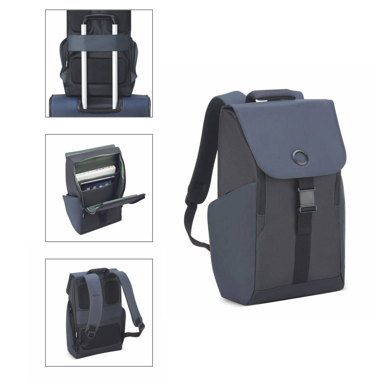 Zaino Portacomputer 15 Delsey in Poliestere 600D. Impugnatura superiore ultra confortevole, 2 tasche laterali con zip, tracolle confortevoli.. Dimensione: cm 31,5x45,5x14,5. Confezione: n/a