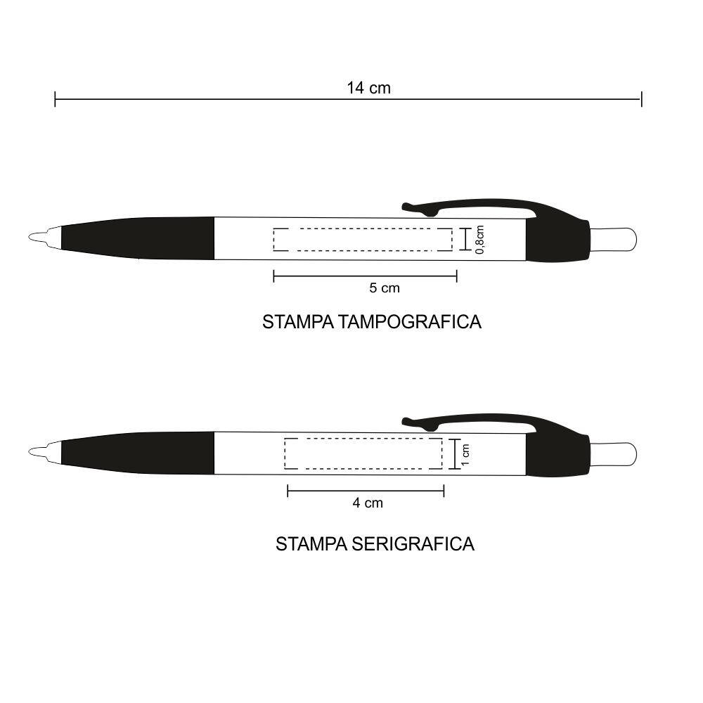 Penna sfera a scatto in plastica. Fusto bianco particolari colorati. Refill nero. Colori: vedi catalo-go. Imballo: 1000xcolore
