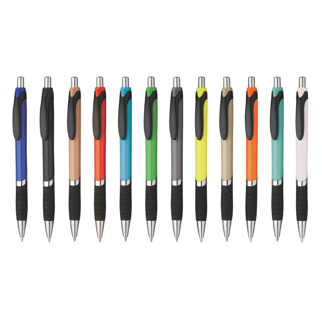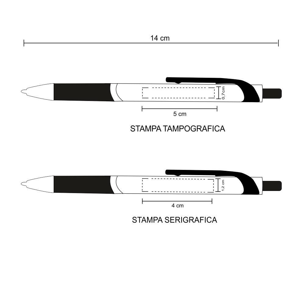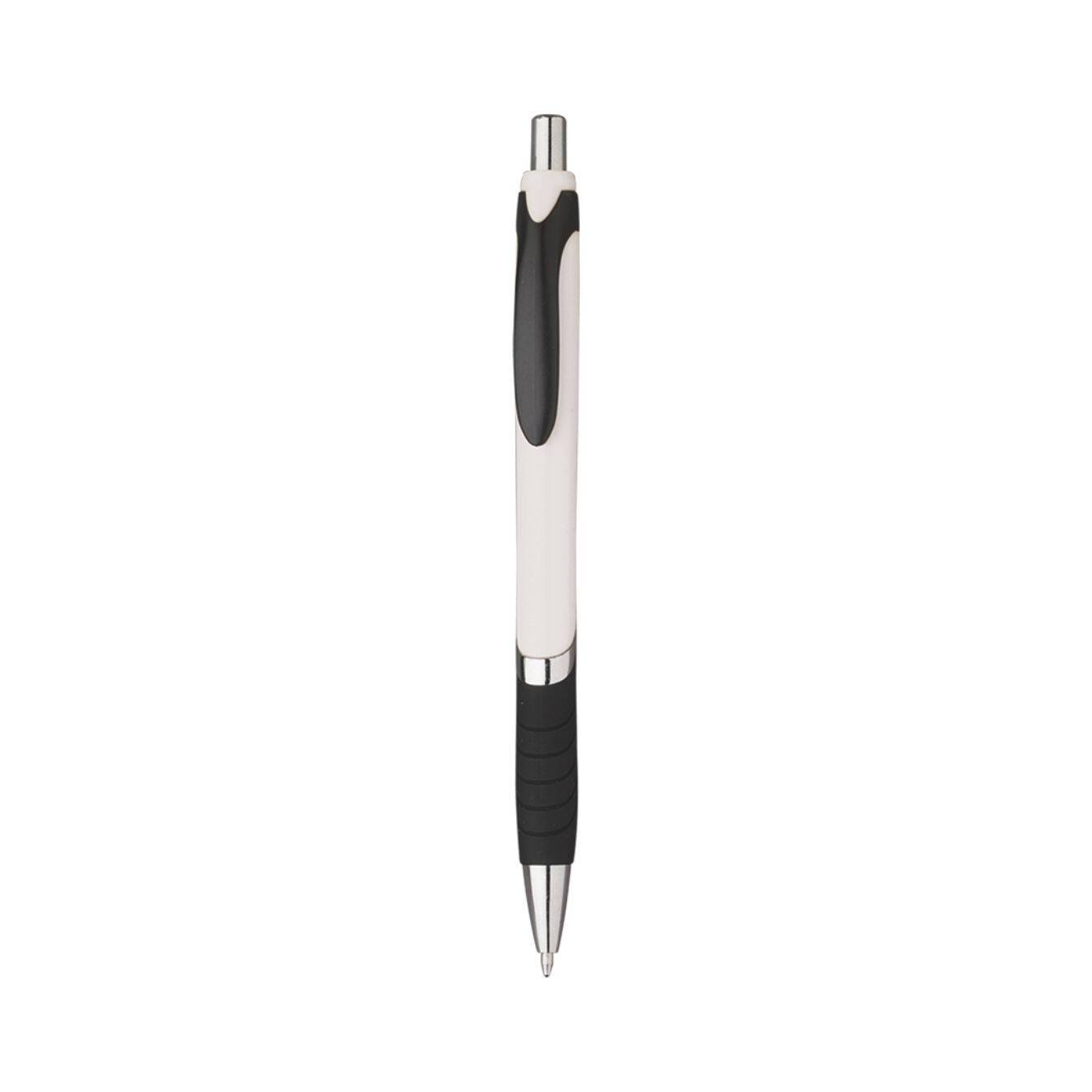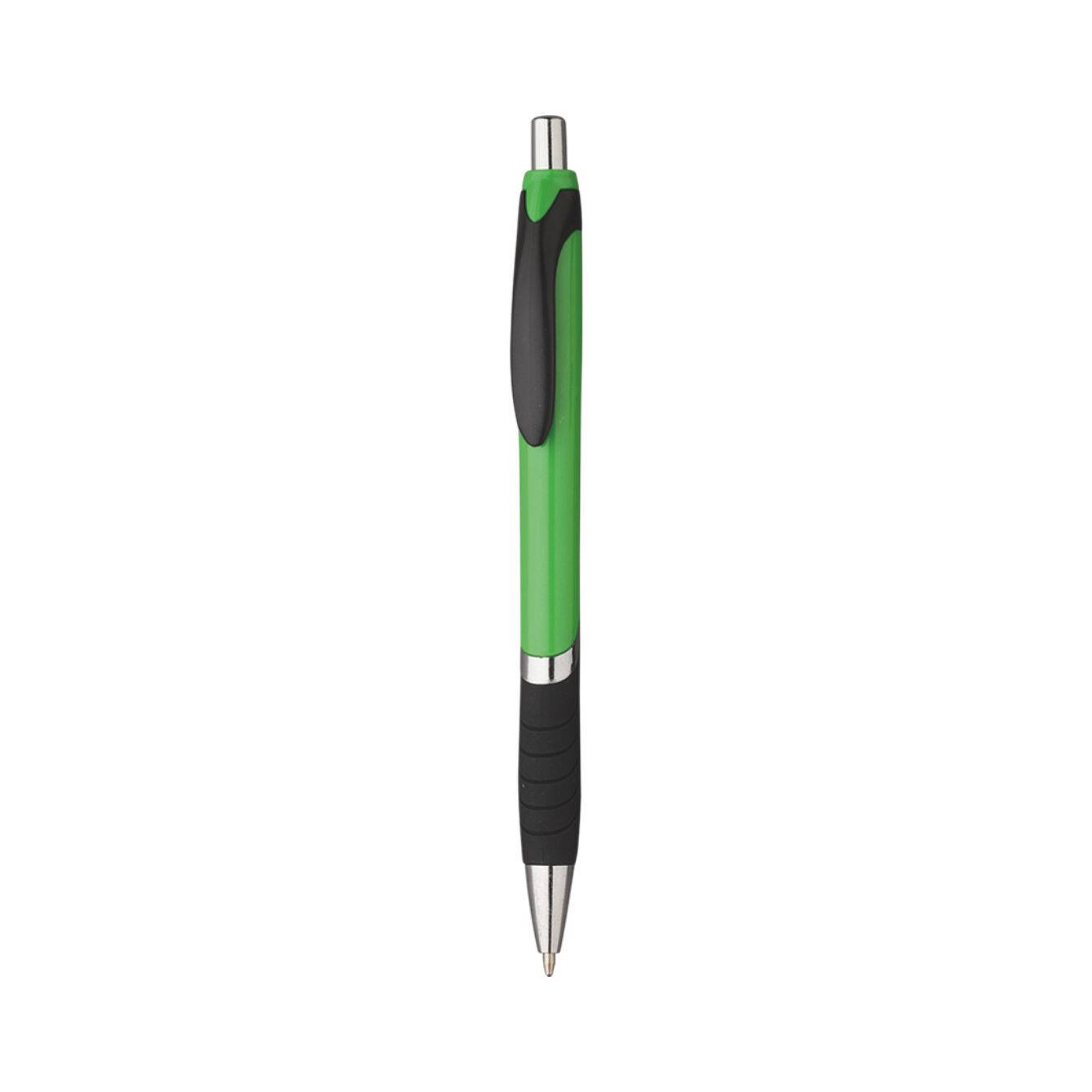 Penna sfera a scatto in plastica con clip in plastica. Fusto colorato particolari neri. Refill nero. Colori: vedi catalogo/sito. Imballo: 1000xcolore