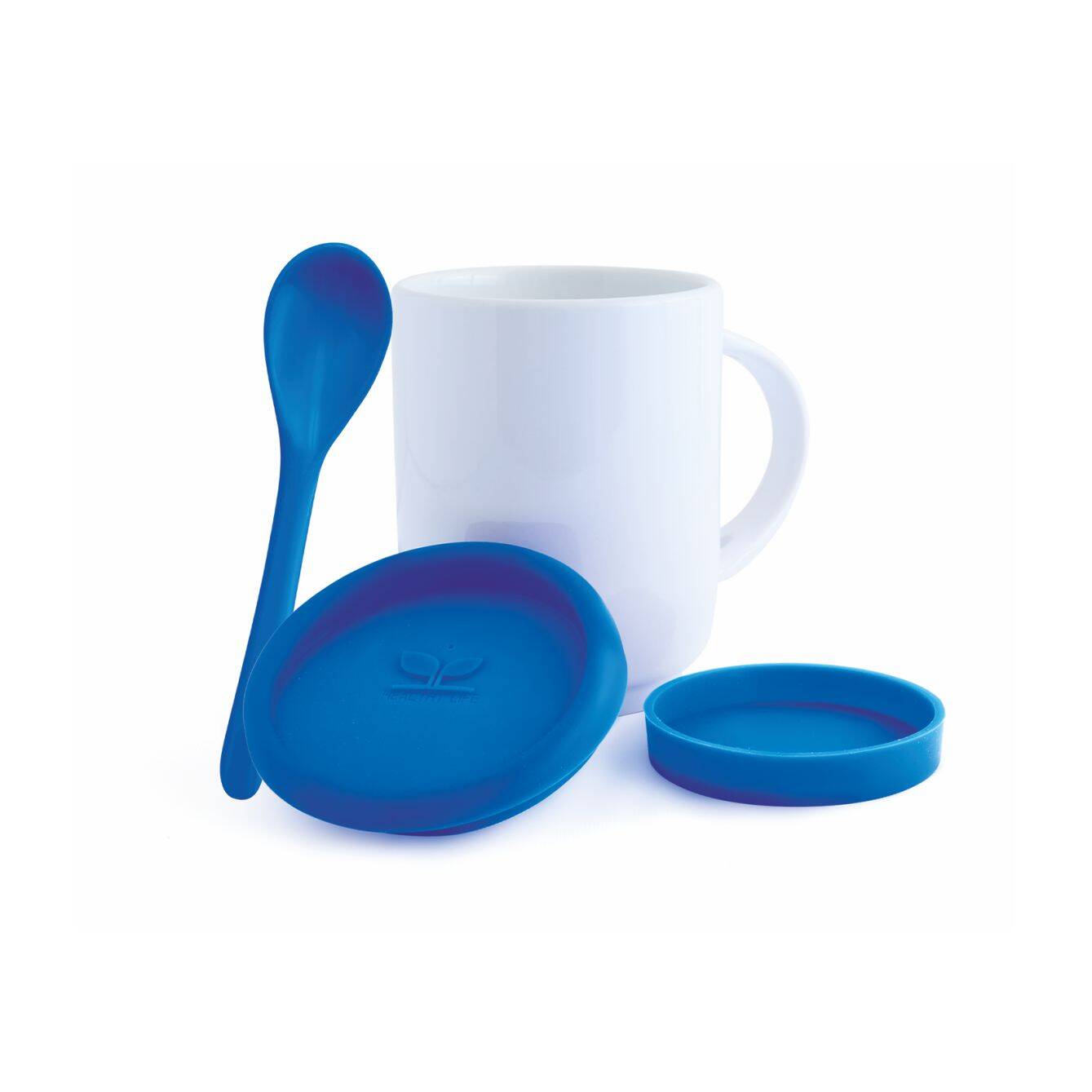 Tazza in ceramica con cucchiaio in ceramica, tappo e base in silicone colorato. In astuccio. Area di stampa: cm 7,5x18. Dimensioni: cm 12,5x7,5Ø,13oz. Perfetta per accompagnarti nelle sfide di ogni giorno.