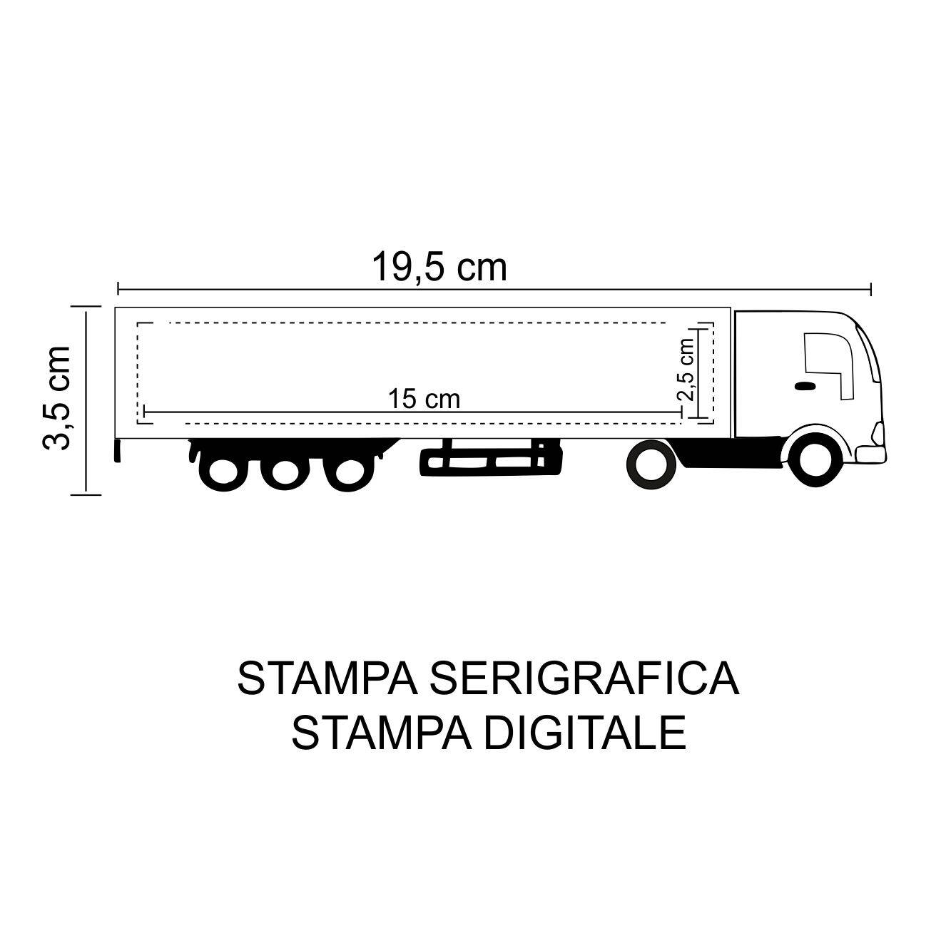 Camion in plastica. Cabina in metallo, rimorchio in plastica. Ideale per stampa UV. Colori: blu, rosso, nero, bianco. Confezione in astuccio trasparente. Dimensioni cm. 19,5x3,4x4,5