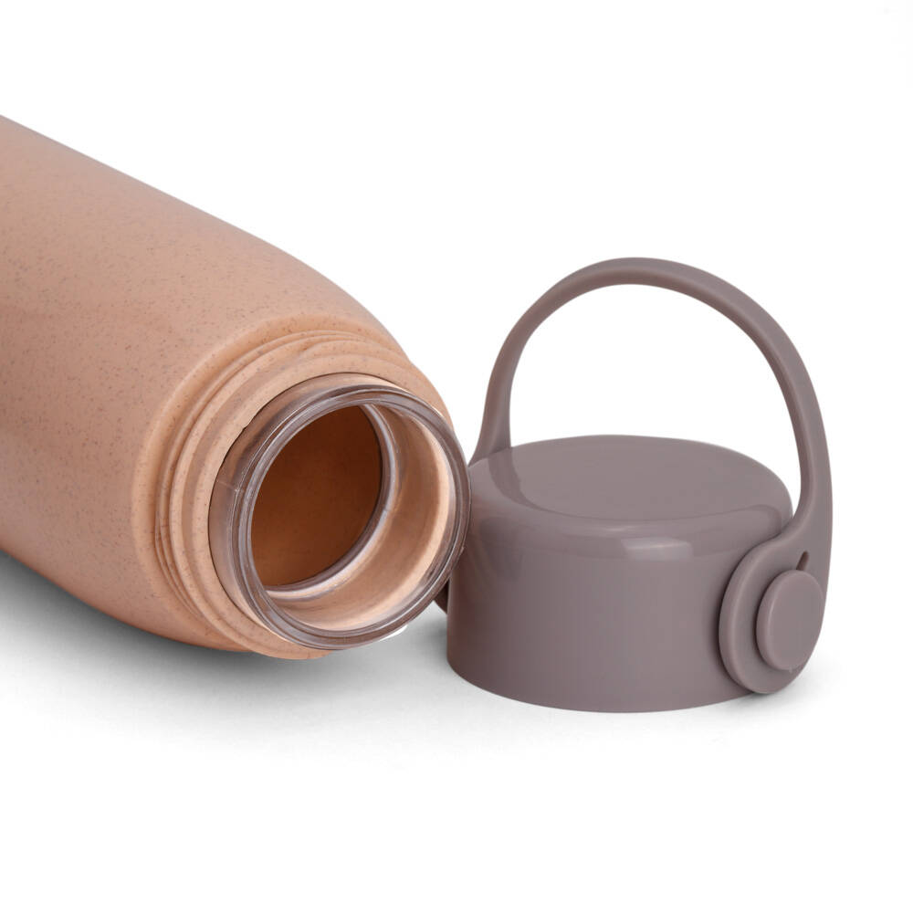 Borraccia capacità 380ml.corredata di porta cellulare Acciaio e paglia di frumento. Confezione in astuccio. Dimensioni Ø cm 6 h 23,5 Imballo: 50 -