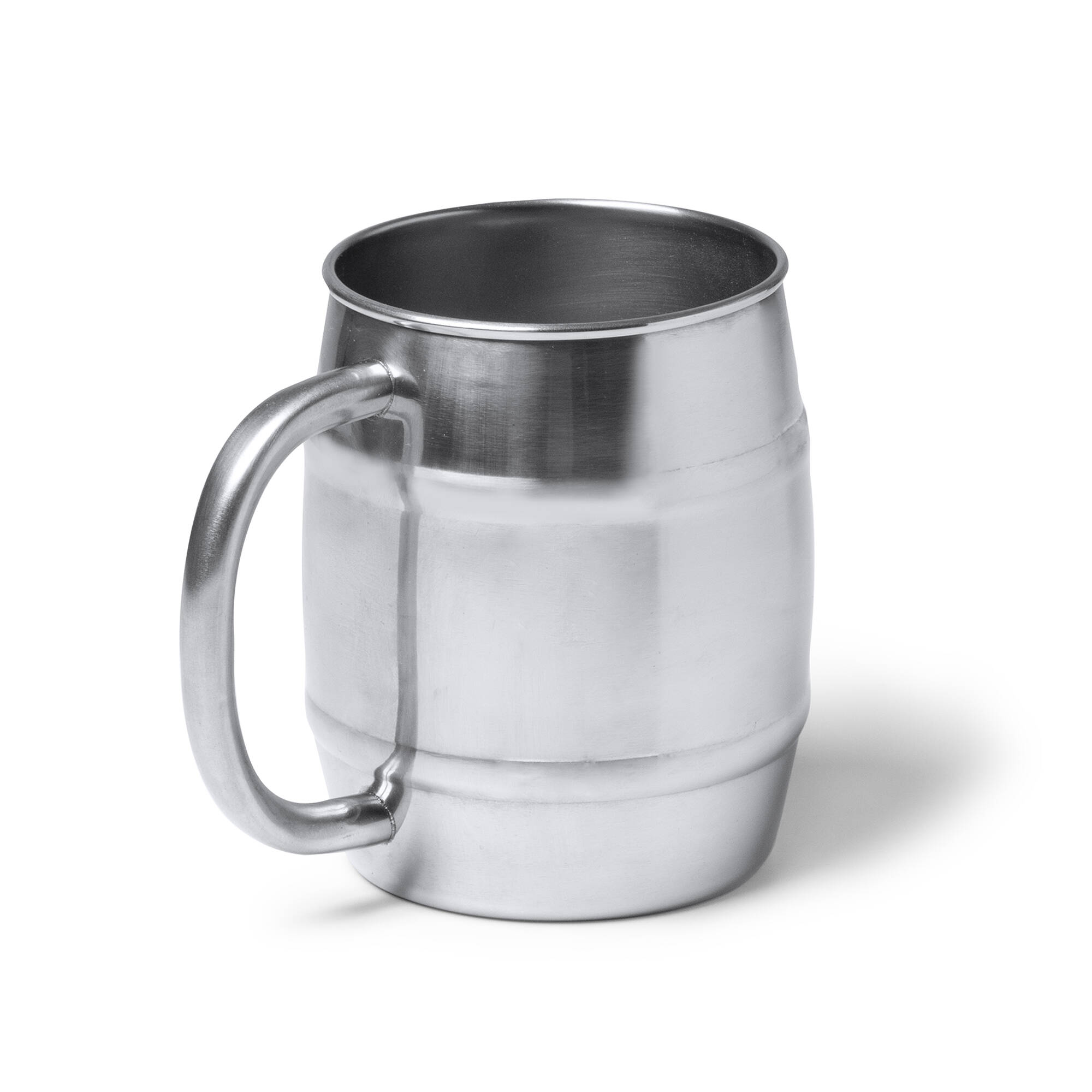 Boccale da birra in acciaio inox 304 con finitura a specchio. Capacità 500 ml. Confezione in scatola bianca. Dimensioni: cm 11x8,5Ø