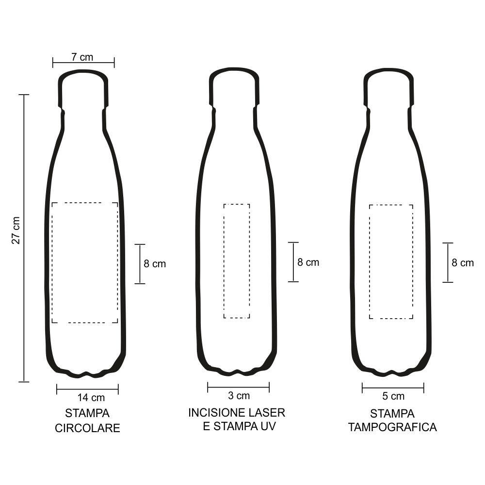 Borraccia termica doppia parete. 12H caldo 24H freddo. Acciaio inox 304. Capacità 500ml. Confezione in astuccio. Colore unico Dimensioni Ø cm.7 h. 27 Imballo: 50