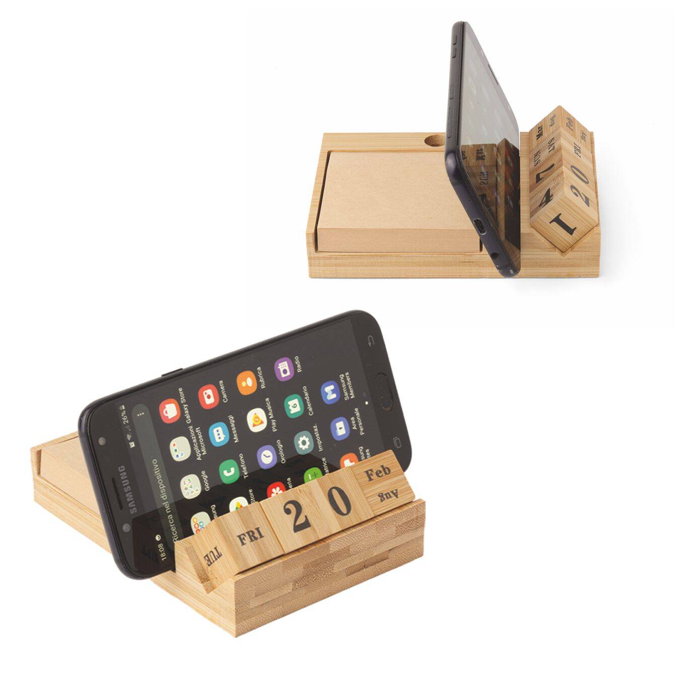 Porta blocco con calendario perpetuo, supporto per smartphone e 2 slot per penne, 100 fogli adesivi in carta craft. Area di stampa A: cm 8x1,7. Area di stampa B: cm 4x1,2. In astuccio. Dimensioni: cm 9,5x2,4x13,3. Il complemento ideale per chi ama essere organizzato con stile.