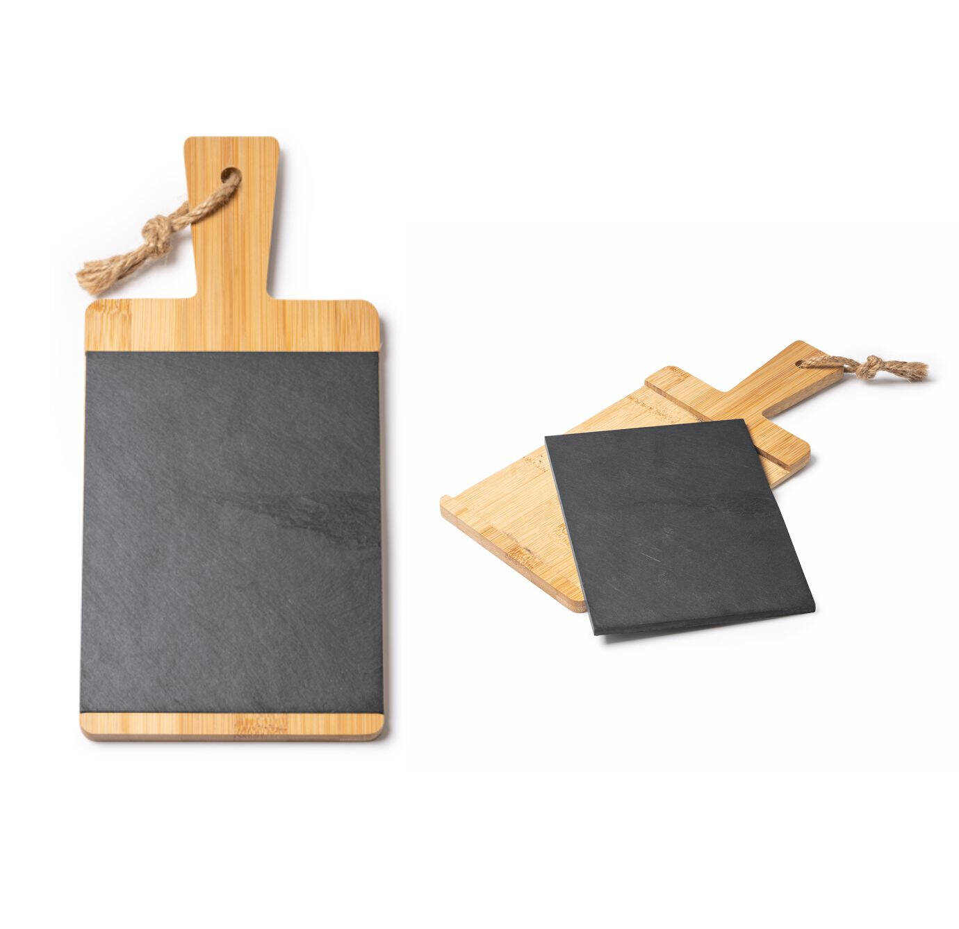 Tagliere in bamboo e ardesia. Confezione in scatola. Dimensioni: cm 33x15x1