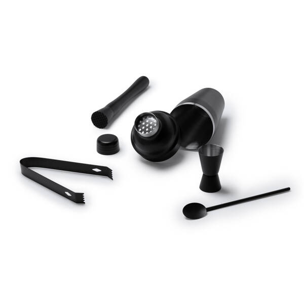Set da cocktail in acciaio inox 304 con shaker da 550 ml. Dimensioni: cm 25x28x9