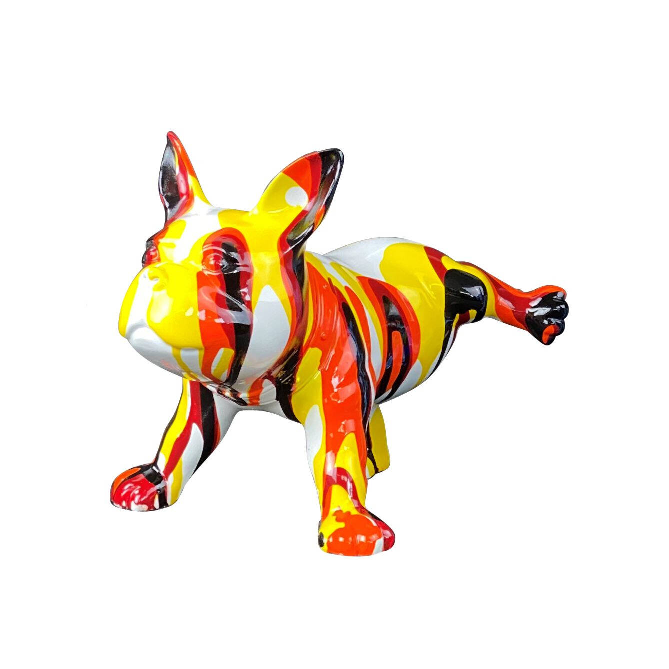 Oggetti di design in poliresina a forma di cani con fantasia multicolor. Dimensioni: cm L.23xH.18