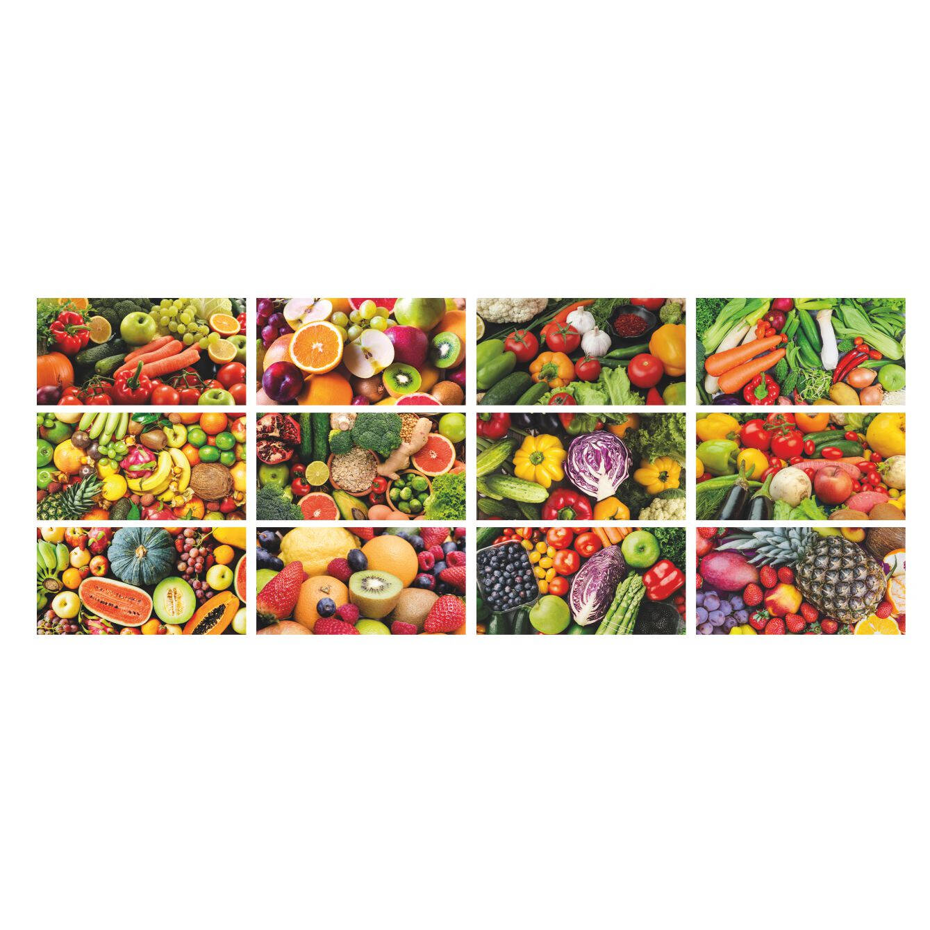 Calendario “Frutta e Ortaggi”. Mensile 12 fogli + retro. Testata pressofusa carta patinata. Dimensioni: cm 28,8x47, testata cm 28,8x9. Imballo: 100