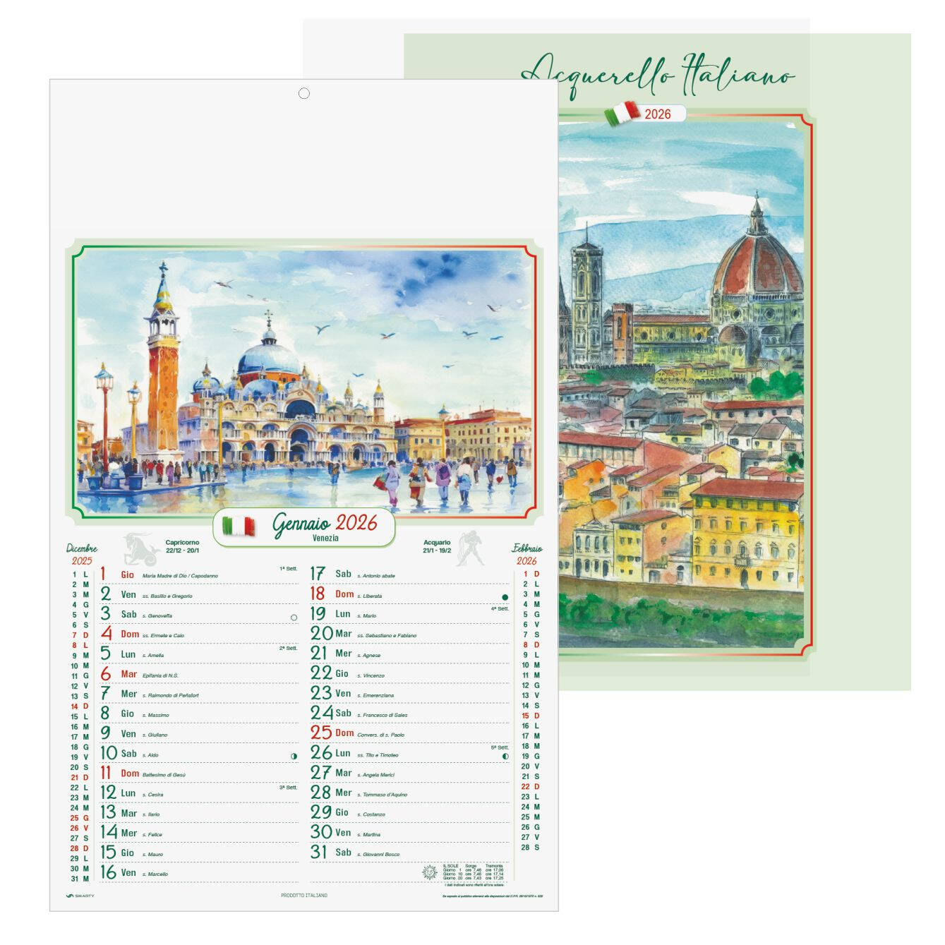 Calendario “Citta’ d’Italia”. Trimestrale 12 fogli + copertina. Carta patinata. Dimensioni: cm 31x53, testata rinforzata cm 31x10,8. Imballo: 100. Carta Patinata . Gr. 90 mq