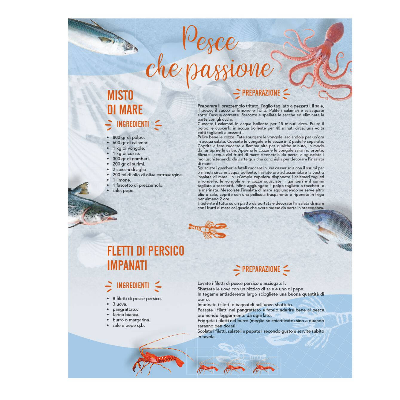 Calendario “Pesce”. Trimestrale 12 fogli. Carta patinata Testata pressofusa. Dimensioni: cm 28,8x47, testata cm 28,8x9. Imballo: 100