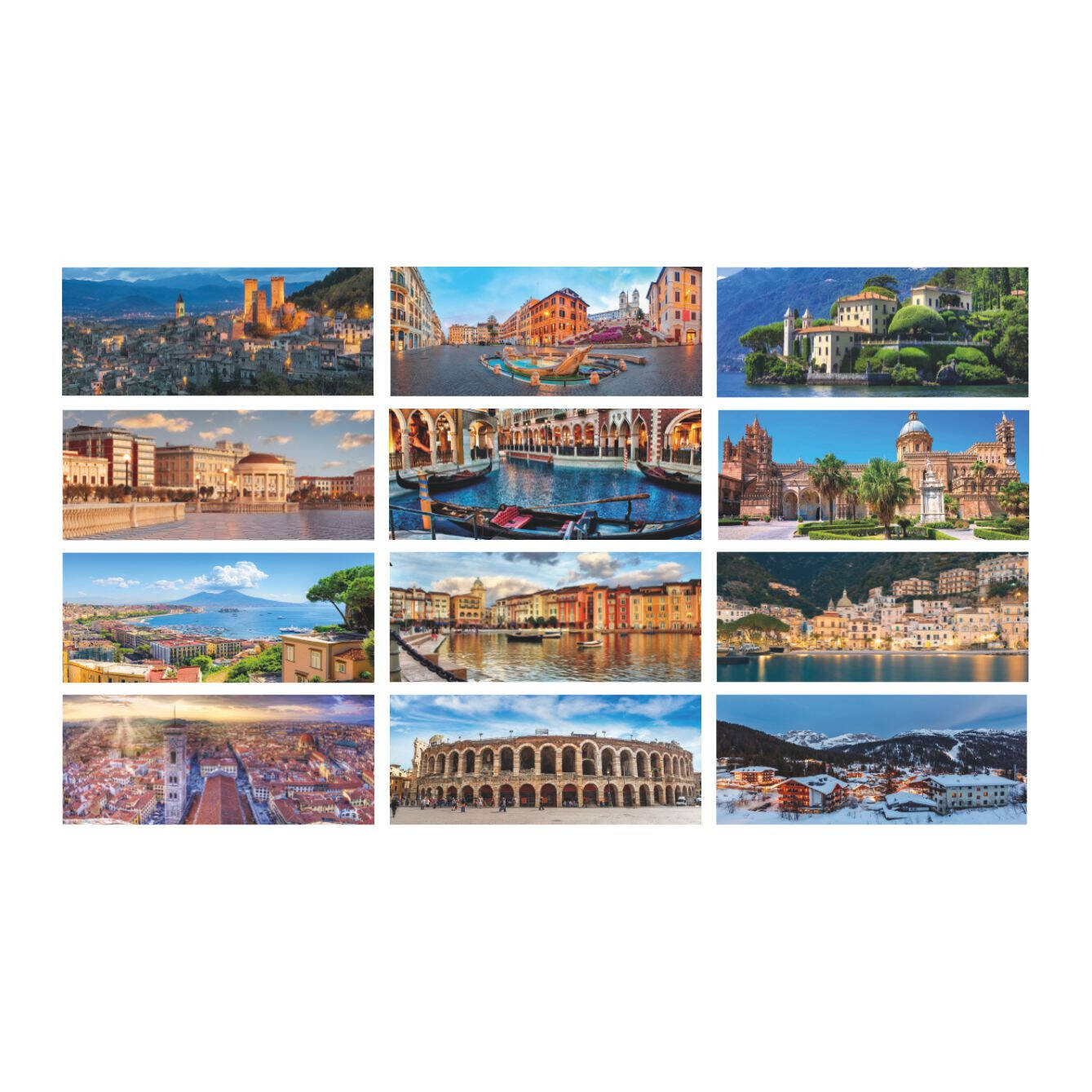 Calendario “Paesaggi e Città”. Trimestrale 12 fogli cartoncino bianco. Carta patinata. Dimensioni: cm. 19x14,5, piedino cm 19x3,5. Imballo: 100. Carta Patinata . Gr. 90 mq