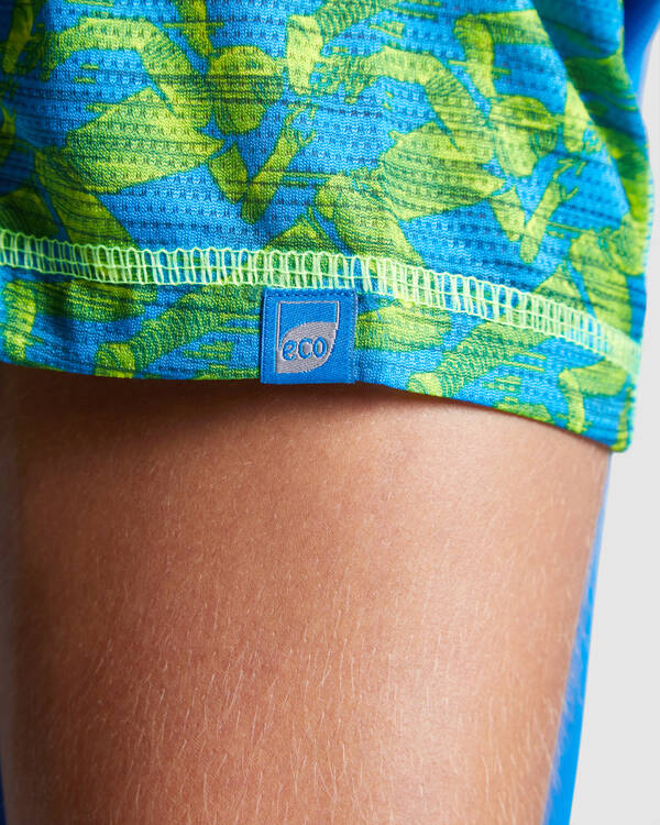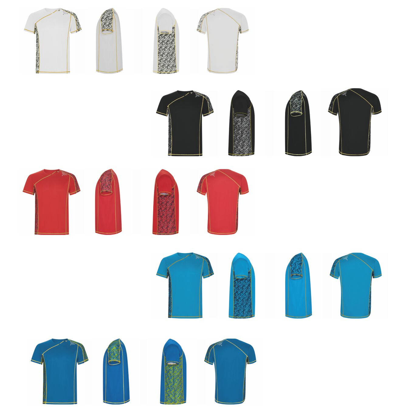 T-shirt tecnica maniche raglan con pannelli stampati. Poliestere riciclato CONTROL DRY. Cuciture decorative fluo. Parte posteriore più lunga della parte anteiore. Etichetta identificativa del logo ECO sulla manica.