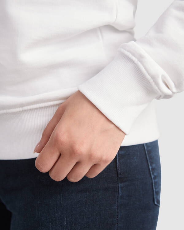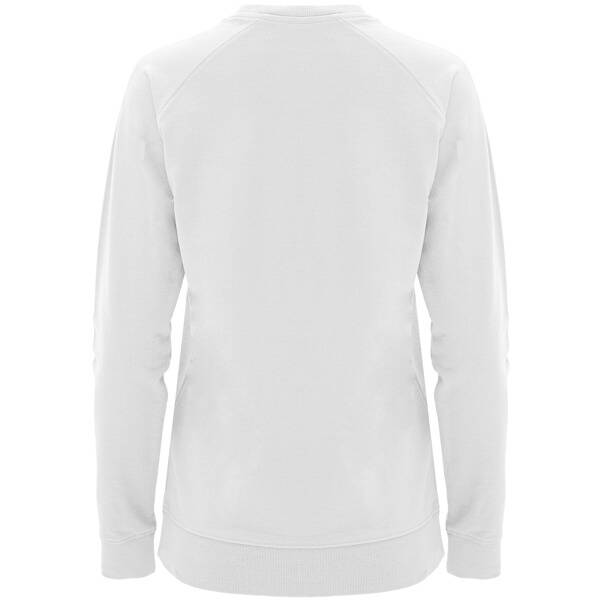 Felpa in cotone manica lunga stile ranglan. Collo, polsini e cintura in costina 2x2. Girocollo con copricuciture di rinforzo all´interno del collo. Cuciture frontali incrociate e rinforzate in costina 2x2.