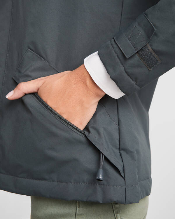 Parka collo alto con cerniera in tinta.1.-Cappuccio estraibile piegato nel collo con chiusura in velcro.