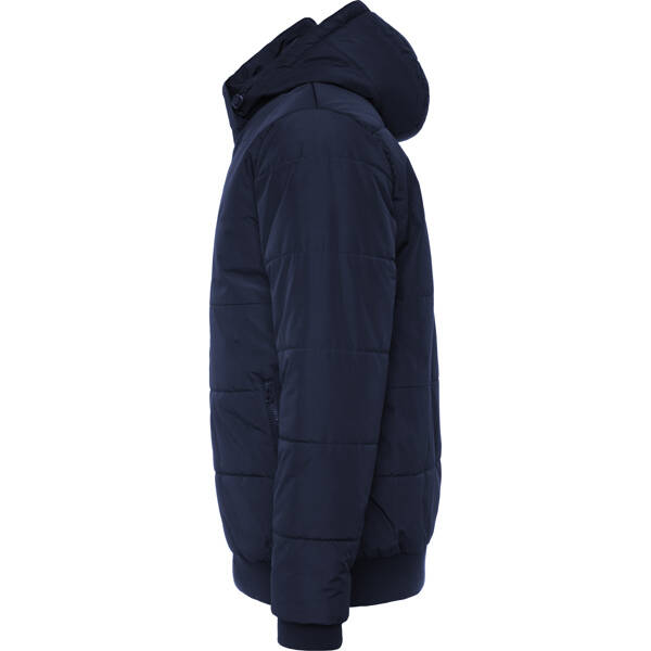 Giubbotto imbottito idrorepellente. - · Collo alto. - . Cappuccio rimovibile con regolatori. - · Zip centrale in tono con tiretto e mentoniera. - · Due tasche laterali con cerniera. - . Cosine 2x1 nei polsini e vita. - · Accesso per la personalizzazione sul lato sinistro e sulla schiena.