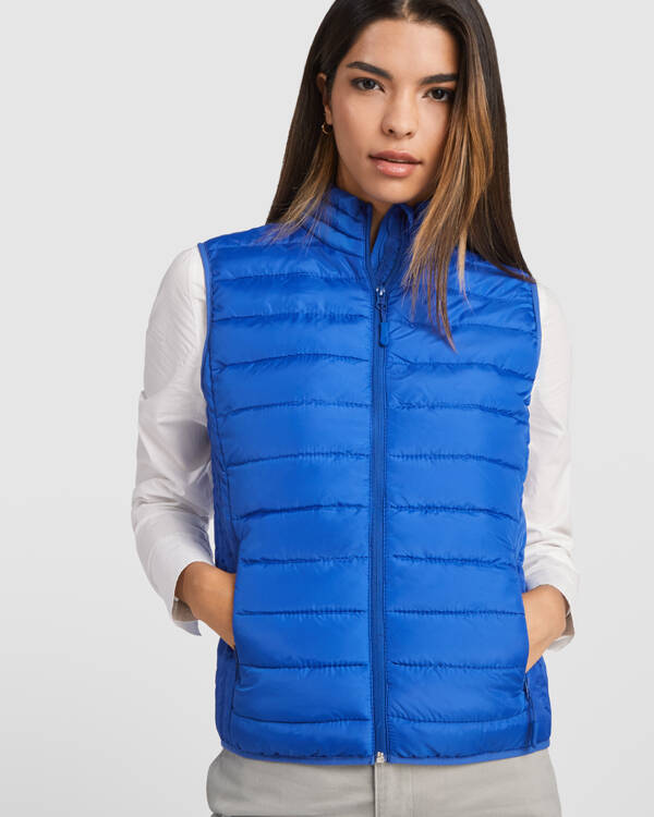 Gilet da donna imbottito al tatto piuma.1.- Cerniera invertita a tono.