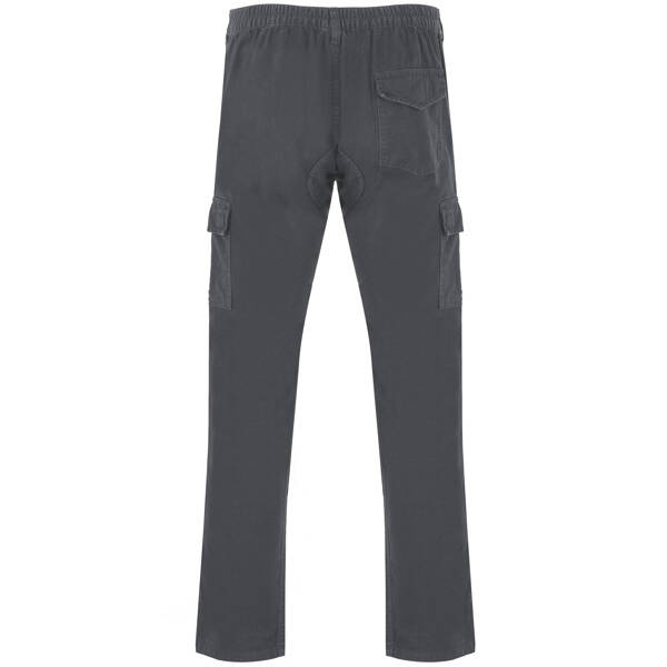 Pantalone lungo in tessuto resistente di cotone: 1. Cinturino elastico regolabile nella parte posteriore. 2. Due tasche frontali. 3. Tasca posteriore con bavero e chiusura in velcro. 4. Due tasche laterali con bavero e chiusura in velcro. 5. Cavallo rinforzato. 6. Doppio tessuto sulle ginocchia.