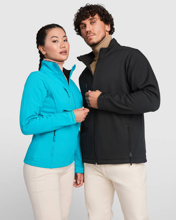 Softshell a doppio strato.1._ Cerniera invertita a tono, con protezione mento e tiretto.