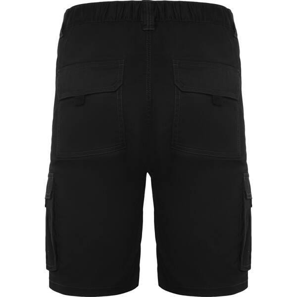 Pantaloncini con tasche. - · Vita elasticizzata regolabile sul retro. - · Due tasche anteriori. - · Due tasche laterali con patta, chiusura con velcro e soffietto centrale. - · Due tasche posteriori con patta e chiusura in velcro.