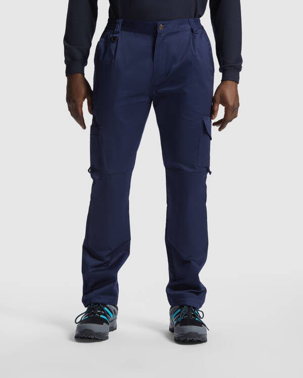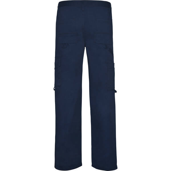 Pantalone taglio dritto senza pinze.1. Cintura regolabile mediante gomma.