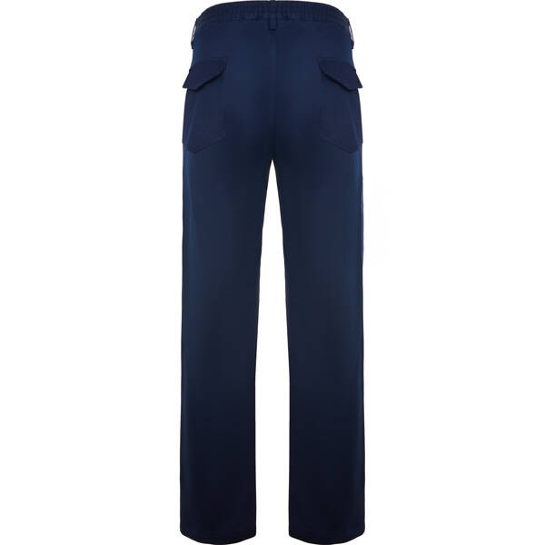 Pantalone lungo in tessuto ignifugo con elastico in vita regolabile sul retro. Due tasche frontali. Tasca posteriore con chiusura a patella e velcro e tasche laterali con chiusura a patta e velcro.