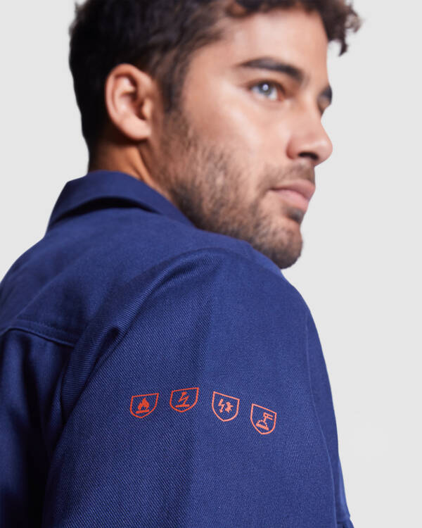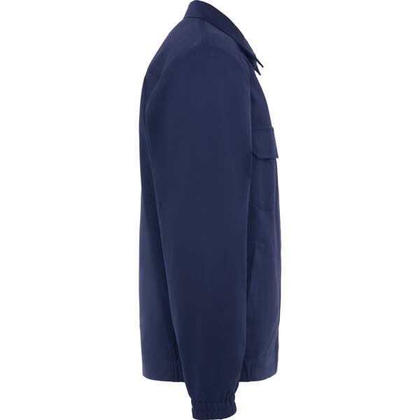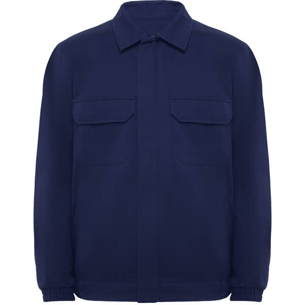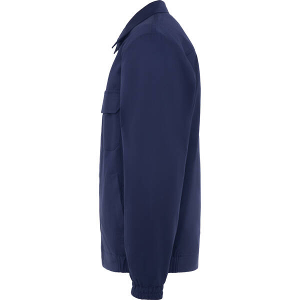 Giacca in tessuto ignifugo. - · Abbottonatura centrale con chiusura a zip e velcro. - · Due tasche anteriori sul petto con patella e chiusura in velcro. - · Due tasche laterali con patta e bottone. - · Elastico in vita sui lati. - · Polsini elastici.